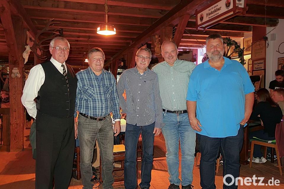 Bürgermeister Gottfried Härtl (Zweiter von rechts) dankte den Organisatoren des „3. Friedenfelser-Berg-Classic-Preis 2018“ besonders. Angesichts des großen Erfolges hatten die Vorsitzenden Stefan Schmalzreich (rechts) und Franz Höcht (Zweiter von links) sowie die Streckensprecher Erhard F. Eckert (links) und Bernd Aßmann (Mitte) bei der Nachfeier im Brauereimuseum gut lachen.
