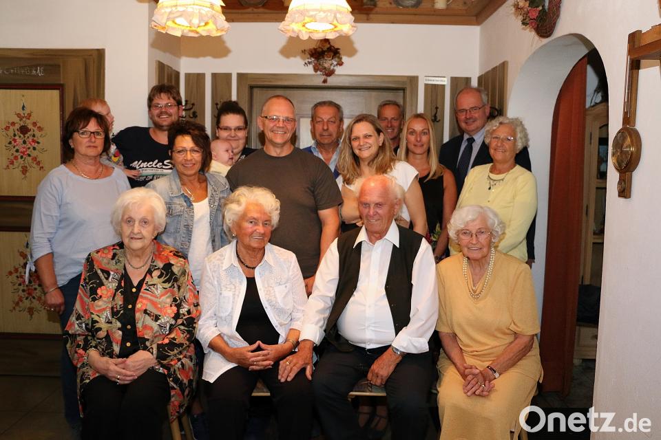 Diamantene Hochzeit feierten Edeltraud und Christopf Daubner (vorne mitte) im Kreise ihrer Familie. Bürgermeister Gottfried Härtl (hinten rechts), Kinder, Enkel und Urenkel, Verwandte sowie die beiden Schwestern von Christopf Daubner, Zwillingsschwester Greta Seitz (vorne rechts) und Gunda Schinner (vorne links) beglückwünschten das Ehepaar.