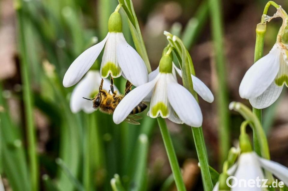 Die ersten Frühlingsblüher zeigen sich schon. Schneeglöckchen erfreuen nicht nur das Auge und lassen die Frühlingsstimmung in uns aufkommen, sondern sind auch die erste Nahrung für die ebenfalls in den Startlöchern stehenden Insekten. Hier labt sich eine Honigbiene am köstlichen Nektar der Blüte.