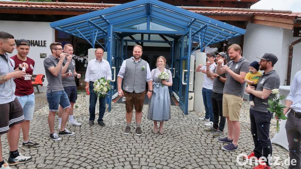 Beim Jubiläum der Krieger- und Soldatenkameradschaft in Wondreb hatten sie sich 2018 kennengelernt. Jetzt gaben sich Rosalie Gmeiner und Johannes Härtl das Jawort vor der Friedenfelser Standesbeamtin Regina Wildenauer. Der 33-jährige staatlich geprüfte Bautechniker Johannes Härtl aus Friedenfels und die 26-jährige Realschullehrerin Rosalie Gmeiner aus Wondreb engagieren sich ehrenamtlich in Friedenfels. Johannes Härtl, Gemeinderat in Friedenfels, Vorstandsmitglied der Jungen Union und des CSU-Ortsverbandes, steht seit 2017 dem Turn- und Sportverein als Vorsitzender vor. Lange dauerte deshalb auch die herzliche Gratulationscour der Sportfreunde. TSV-Vorstand und Akteure der Sparte Fußball überbrachten Glückwünsche und ließen das frisch vermählte Paar hochleben. Beste Wünsche kamen natürlich auch von Familie, Freunden und Arbeitskollegen des Brautpaares.