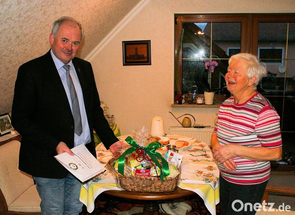 Gefreut hat Waltraud Grieswald an ihrem Ehrentag auch der Besuch des Gemeindeoberhauptes. Bürgermeister Gottfried Härtl überbrachte die Glückwünsche der Gemeinde Friedenfels und einen großen Geschenkkorb. Weiterhin viel Gesundheit wünschte auch der Vorsitzende des Siedlerbundes, Otmar Zeitler, der Waltraud Grieswald zudem für ihre lange Mitgliedschaft im Siedlerverein dankte.