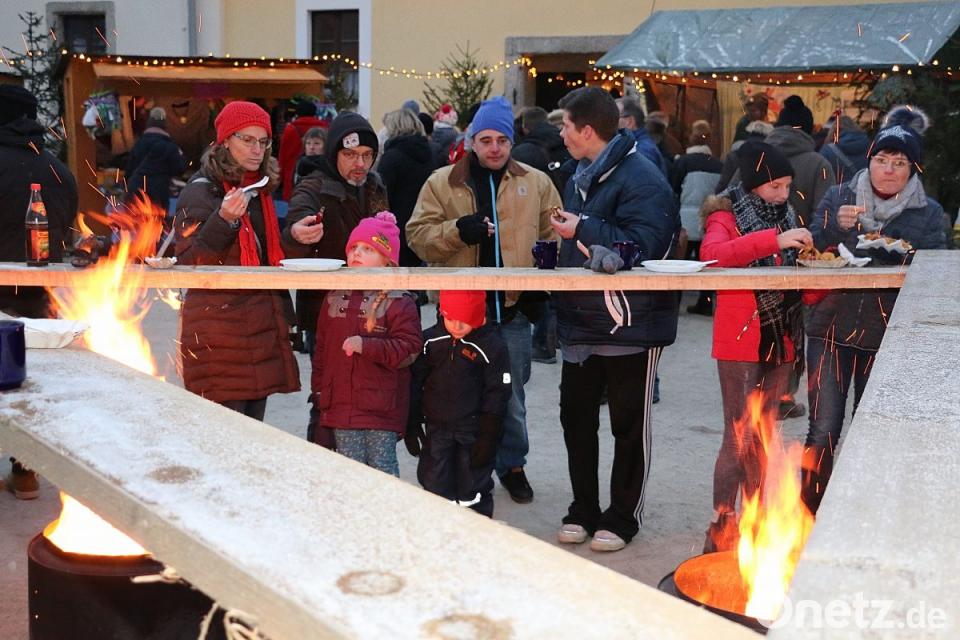 Jäger und Förster servierten frisch zubereitete Wildburger und zahlreiche Wild-Spezialitäten aus dem Steinwald. An den weiteren Verkaufsständen der Vereine gab es Dotsch mit Apfelmus, Wildgulasch, Bratwürste mit Kraut sowie frische Kartoffelchips. Der Stand der Delegation aus der Partnergemeinde Raggal in Österreich verzauberte mit Käsespezialitäten und Berghonig. Im beheizten Innenbereich konnten die Besucher bei einem Glas warmem Tee oder Kaffee ihre klammen Finger aufwärmen und Genüsse aus Omas Backstube ausprobieren. Der Felsenkeller. Ein Anziehungspunkt auch der Felsenkeller: Alt und Jung genossen am Lagerfeuer Limonaden und die Spezialitäten wie den "Wintertrunk" von der Schlossbrauerei.