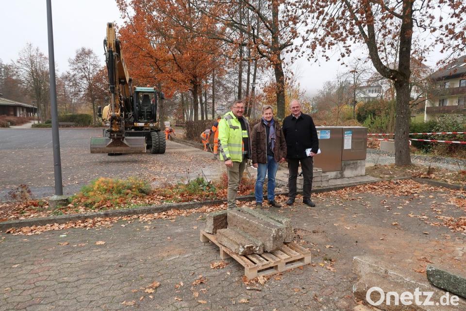 Eines der Projekte: Der Fuß- und Radweg ab der Metzgerei-Filiale Kraus zur Steinwaldhalle und zum Biotop wird vollständig neu asphaltiert. Auch werden die Bankette angepasst. Um in Zukunft den bisher verursachten Schäden in der Asphaltdecke durch Wurzelhebungen vorzubeugen, wurde am Wegrand ein Wurzelschutz für den Radweg, die Leitungen und andere Infrastruktur eingebaut. In diesen Sanierungsbereich eingeschlossen sind verschiedene Maßnahmen rund um den großen Parkplatz vor der Steinwaldhalle. Entfernt wurden dabei die morschen Holzpalisaden am rechten Rand der Eisstockasphaltanlage. Ersetzt wurden sie mit Randsteinen aus dem alten Fuß- und Radweg. Auch ein großes zusätzliches Starkstromkabel zum Stromverteiler auf dem Parkplatz wurde verlegt. „In Zukunft haben unsere Festveranstalter vor der Steinwaldhalle immer genügend Saft“, scherzte Bürgermeister Gottfried Härtl.