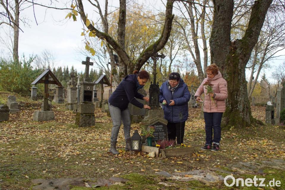 Mit Blumen und Gestecken werden die Gräber der Angehörigen geschmückt und Kerzen entzündet. Nach den Gottesdiensten an diesem Festtag besuchen die Gläubigen die letzte Ruhestätte von Familienmitgliedern, Freunden und Bekannten. Mitglieder des Heimatvereins Plöß müssen jedoch zum Schmücken der Gräber über die Grenze nach Tschechien. Renate Wild (Schönsee), Gudrun Wehr (Friedrichshäng) und ihre Schwester Herfried (Waldsassen) kümmern sich dort mit um die Grabpflege. Mit ihrem Engagement lassen sie den Gottesacker auf der Anhöhe der ehemaligen Ortschaft Plöß auch an Allerheiligen zu einem Ort der Erinnerung werden.