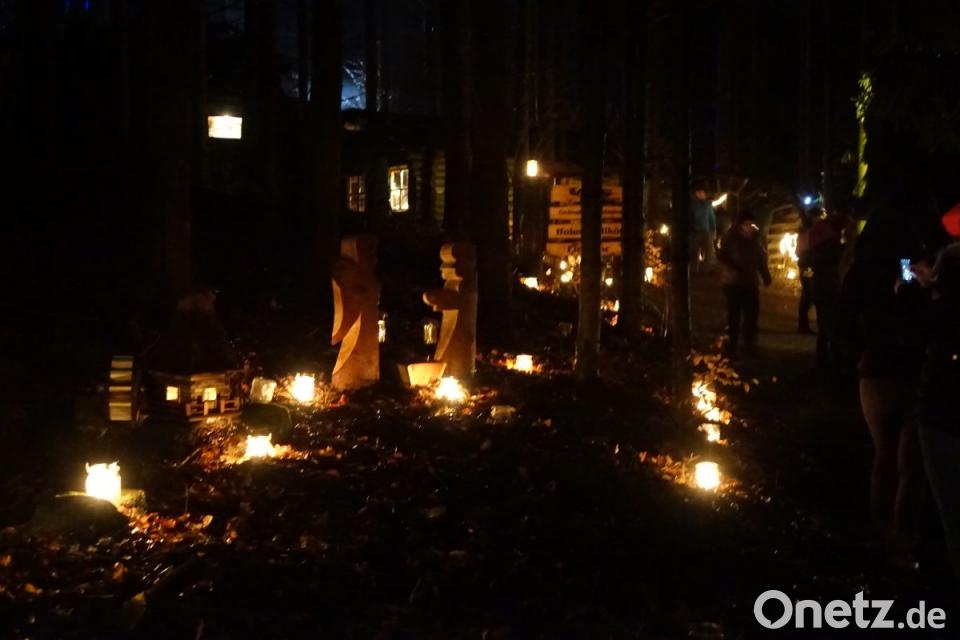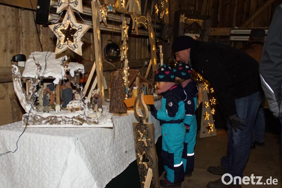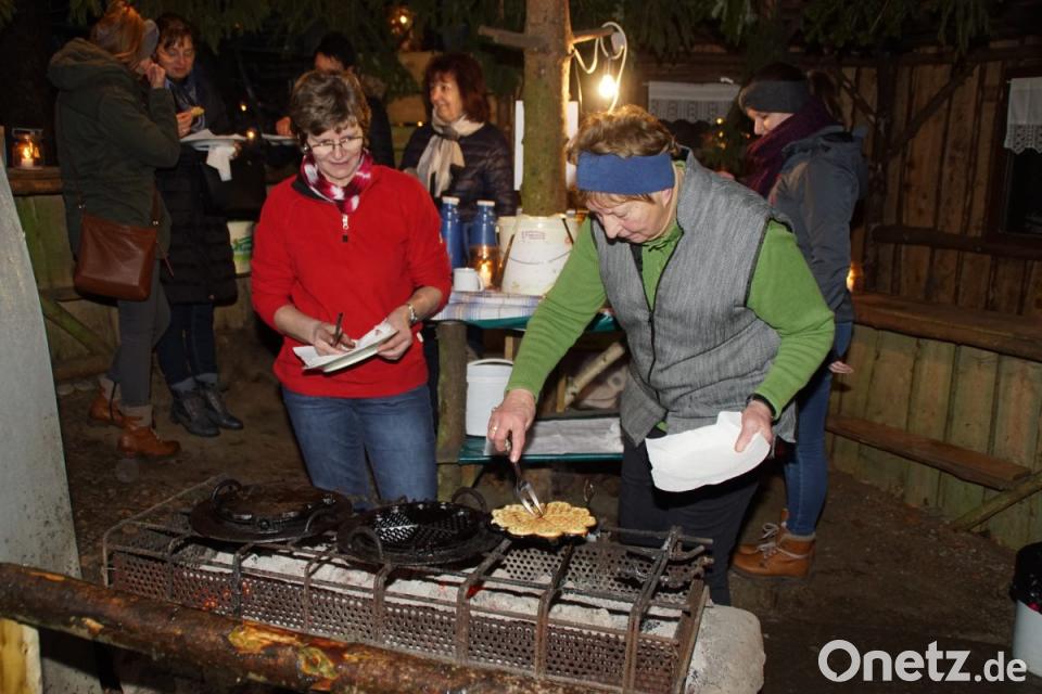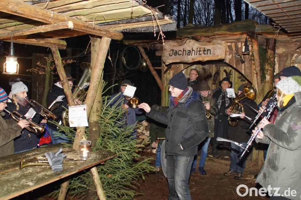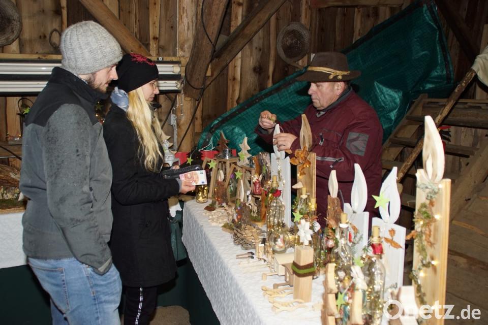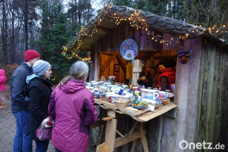 Ganze Arbeit hatte zu dieser Zeit bereits das "Kerzenteam" geleistet und Hunderte von Lichtern entlang des Rundwegs entzündet, deren Schein den Adventswald in eine heimelige Stimmung tauchte. Dadurch hatten die Besucher bereits am Eingang das Gefühl, dass auf dem Areal zwischen dem Grenzwirtshaus und der Freilichtbühne, etwas Besonderes auf sie zukommt. Kinder schickten beim Läuten eines Glöckchens ihren Weihnachtswunsch Richtung Himmel und bestaunten mit großen Augen die Holzfiguren am Wegrand. In den einfach gezimmerten Buden hatten die Anbieter aus Bayern und Westböhmen allerhand vorbereitet: selbstgefertigte Dekoartikel und Glückwunschkarten, handgemachte Keramik, Gedrechseltes, Gefilztes, Gestricktes und allerlei Imkereiprodukte. Viel davon wird wohl in zwei Wochen unter dem Christbaum liegen. Neben dem Kunsthandwerk kam die kulinarische Verpflegung nicht zu kurz: Die Auszeit-Stube lud bei Kartoffelsuppe und Eintopf zum Verweilen ein. Gegenüber haben Frauen Waffeln über offenem Feuer gebacken. Spiralkartoffeln am Spieß ließen sich die Besucher des Waldmarktes zu einer Tasse Glühwein oder Punsch genauso munden, wie die beliebten "Karpfnschoitn" und die am Eulenberg nicht wegzudenkenden Pascherwürste. So gestärkt vergaß man auch fast das nasskalte Wetter. Ständiger Begleiter der verschiedenen Musikgruppen war an den beiden Veranstaltungstagen der böhmische Wind. Wie von den Standlbetreibern und Besuchern immer wieder zu hören war, beeinträchtigte das Wetter die Stimmung allerdings nicht. "Mei, für's Weda ko ma halt nix", lautete hierzu der einhellige Tenor.