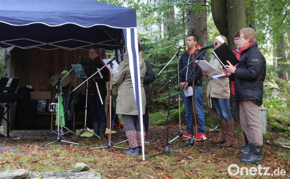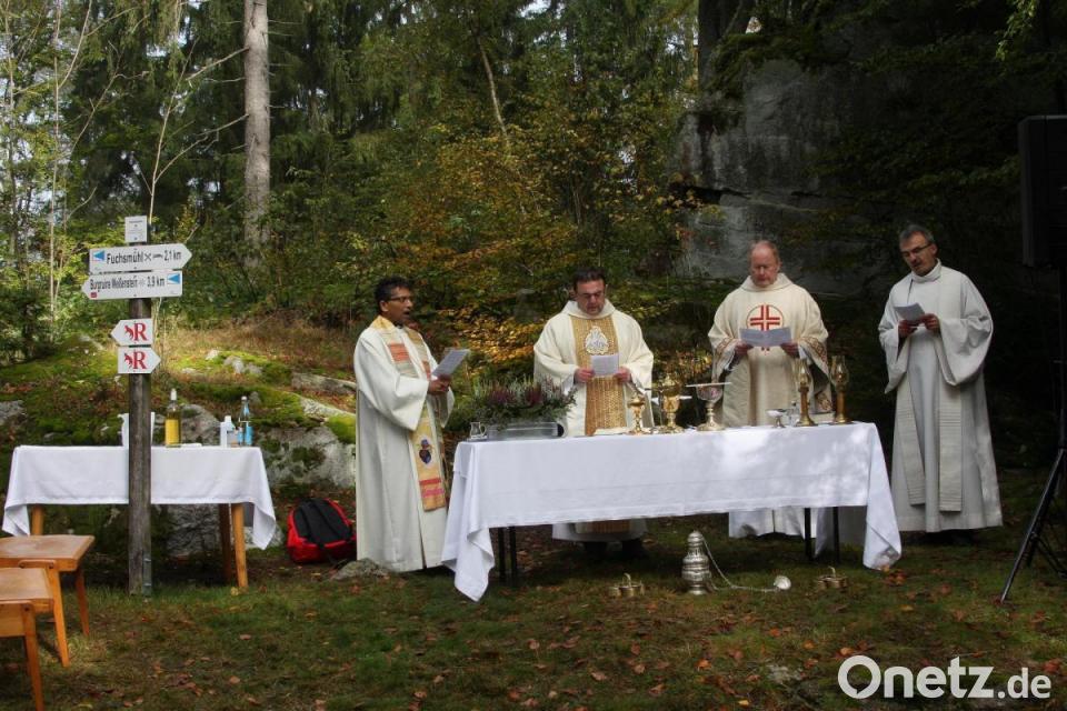 Dem vor dem Altar abgelegten Rucksack, so hatte Jugendseelsorger Konrad Amschl versprochen, sollte noch besondere Bedeutung zukommen. Der Stadtpfarrer aus Bärnau wurde von den Priestern Joseph (Fuchsmühl), Martin Besold (Erbendorf) und Markus Nees (Wiesau) am Altar unterstützt. Für die musikalische Umrahmung an der Felsenbühne konnte der Singkreis Cantiamo aus der gastgebenden Pfarrei gewonnen werden. Das Kyrie sprach das Geschwisterpaar Hannah und Sophia Bächer. Die Lesung kam von Silke Bächer. Um das leibliche Wohl der Gäste aus den beiden Dekanaten sorgten sich der Frauen- und Mütterverein beziehungsweise ein Gasthof im Ort.