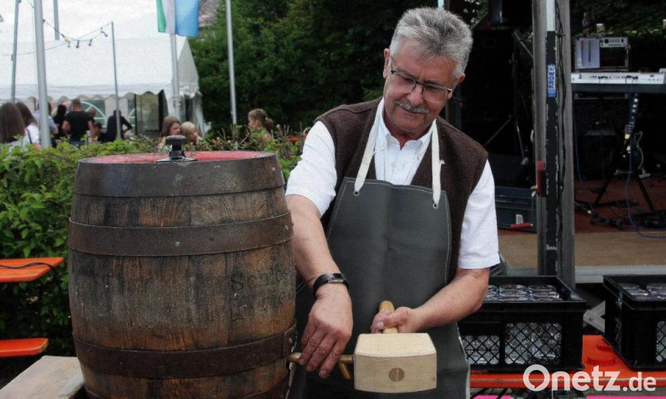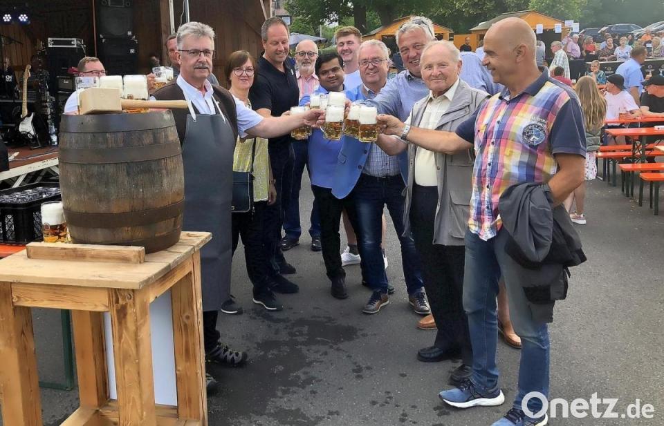 Nur ein einziger, dafür aber gut gezielter Schlag von Bürgermeister Wolfgang Braun genügte für den Bieranstich am Samstag. Mit dem gewohnten „O’zapft is“ startete das siebte Bürgerfest in Fuchsmühl. Gut gelaunt verteilte das Gemeindeoberhaupt die ersten Liter in Form von Freibier. Mit einem "Prost" reichte er die Krüge herum.