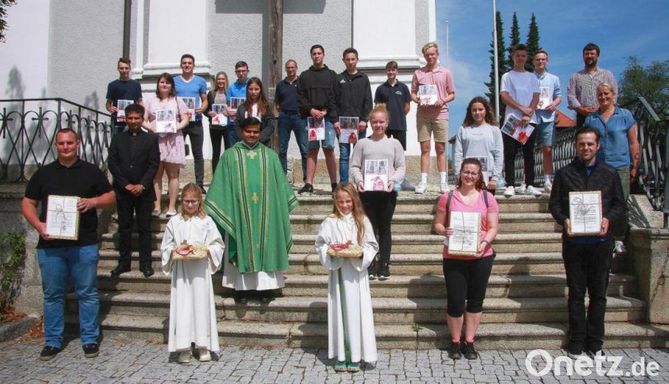 Musikalisch umrahmt wurde der Gottesdienst von Chorleiter und Gitarrist Werner Fritsch und einem coronabedingt kleinen Teil des Kirchenchores. Auf dem Programm standen auch Ehrungen langjähriger Messdiener: 10 Jahre: Bastian Ströll und Maximilian April; 11 Jahre: Lukas Scharf; 12 Jahre: Katharina Schnurrer; 13 Jahre: Larissa Ast und Pascal Straub; 17 Jahre: Christopher April. Im Anschluss wurden elf Ministranten mit einem herzlichen "Vergelt's Gott" und einem Geschenk verabschiedet: Sophie Härtl, Ricarda Baum, Julius Neugebauer, Christian Pinzer, Florian Pinzer, Louis Günthner, Simon Günthner, Emma Heinzl und Ferdinand Heinzl. Als Urgesteine bezeichnete Silke Bächer die scheidende Nina Hartung, die 19 Jahre lang Ministrantendienst verrichtete. 21 Jahre lang war Alexander Schön Ministrant, der ebenfalls Abschied nahm.