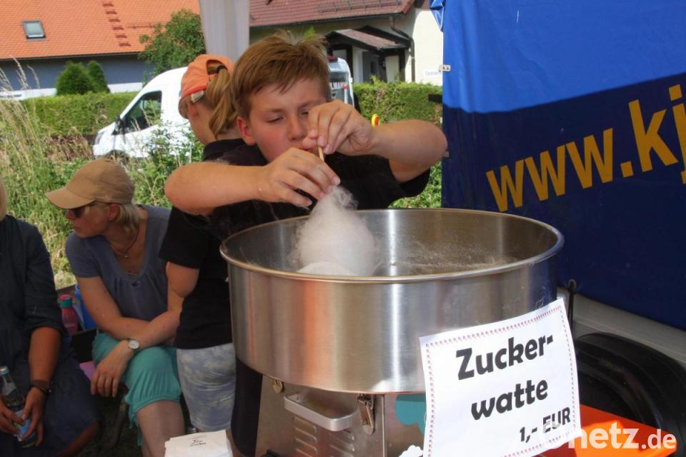 Eingebunden in den Angebotsreigen waren wieder die Ministranten, die Zuckerwatte verkauften, die Kleinen mit Spielen und einem Bastelangebot unterhielten. Für die Hüpfburg hatte sich das Mini-Team einen Teil der Wiese zwischen Jugendheim und Rathaus gesichert, die auch als Parkplatz genutzt wurde.
