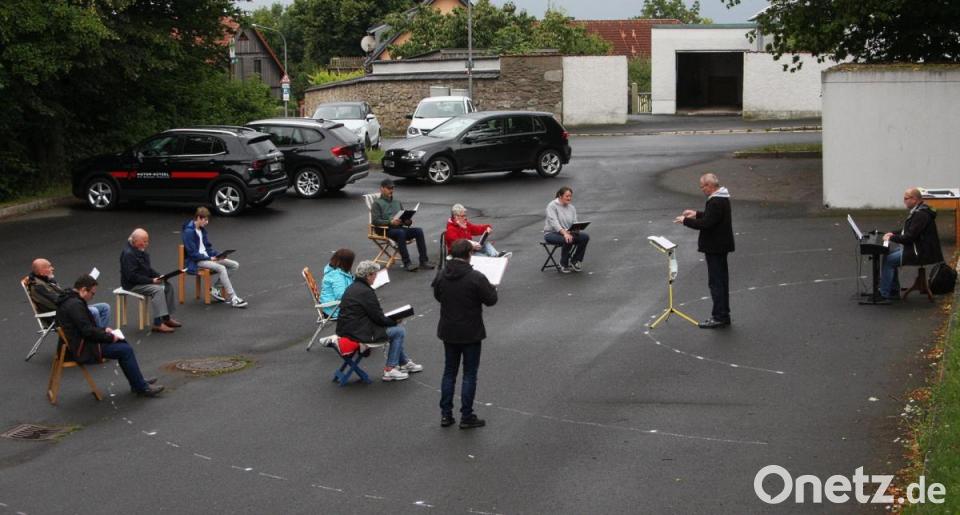 Die Fenster öffnen, um wie gefordert in Abständen zu lüften, brauchte der Fuchsmühler Kirchenchor aber nicht. Die erste Probe nach der auferlegten Corona-Pause fand nämlich beim Jugendheim unter freiem Himmel statt. Damit war auch die Frage gelöst, wie der geforderte Sicherheitsabstand eingehalten werden kann. Platz war genügend vorhanden.