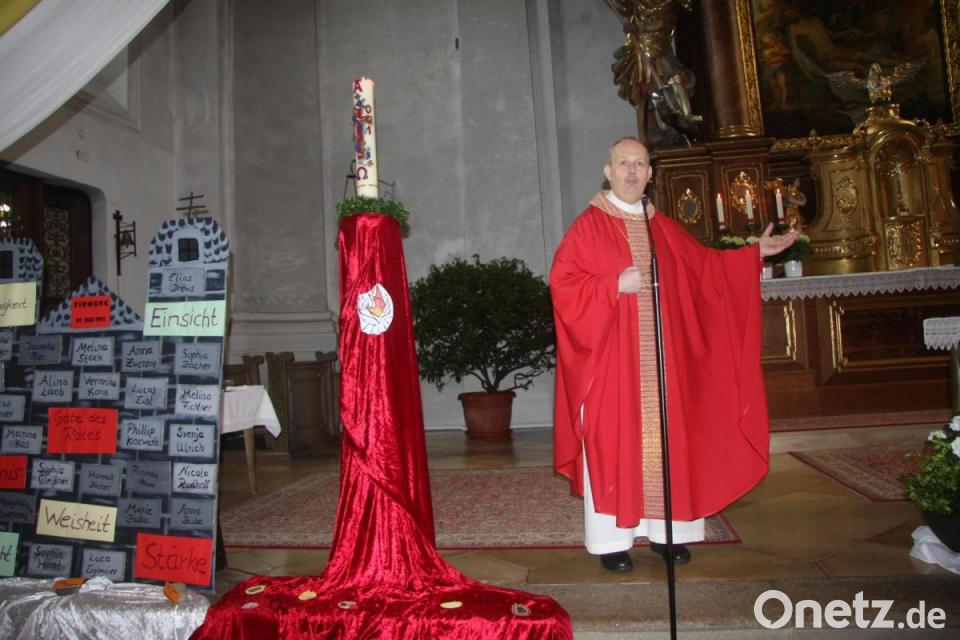 Nur so könne Jesu Botschaft an die Generationen weitergereicht werden, fuhr der Weihbischof fort. Pappenberger erinnerte auch an die Taufe und unterstrich mit Blick auf den Tag der Firmung: „Das Kreuzzeichen, das ihr damals bekommen habt, soll heute zum Leuchten und Glänzen gebracht werden.“