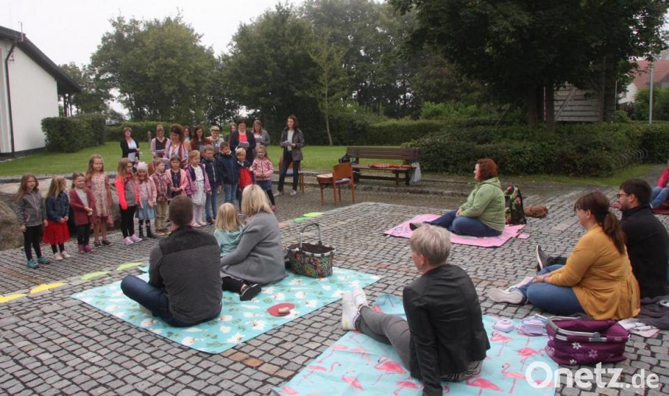 Mit je einem Blumensträußchen bedankten sich die Kinder beim Personal des Kinderhauses Sankt Marien in Fuchsmühl. "Wir sagen Danke“, schlossen sich mit besonderen Geschenken die Eltern der Vorschulkinder an. Verabschiedet wurden die 13 Mädchen und Buben mit einem großem Applaus.