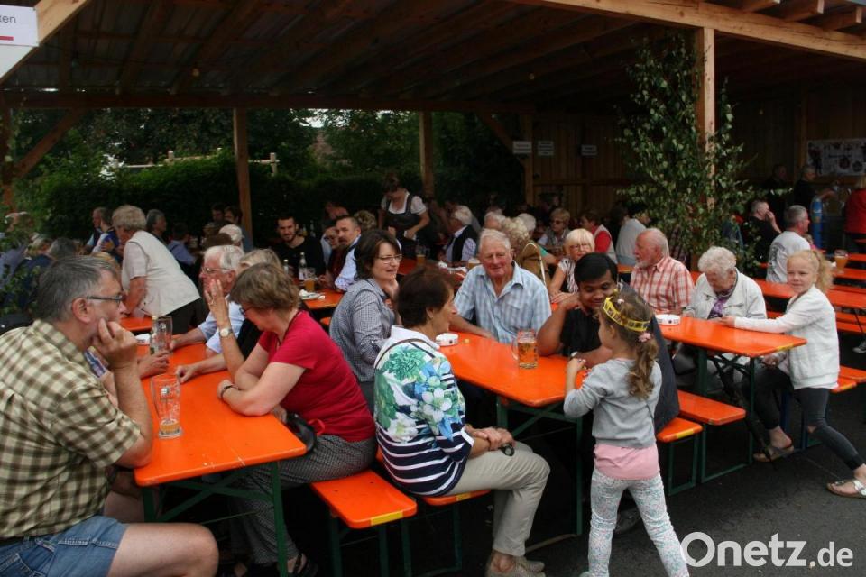 Dem Bieranstich am Festplatz durch Bürgermeister Wolfgang Braun am Samstag folgte abendliche Unterhaltung mit der Gruppe "Crossfire". Weitergefeiert wurde auch, als der Regen einsetzte. Man rückte halt zusammen und genoss den Sommerabend weiter.