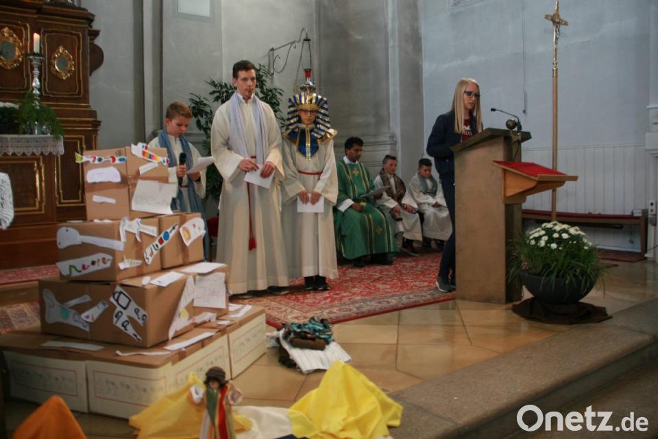 Die biblische Geschichte um Josef, insbesondere der versöhnliche Schluss, standen im Mittelpunkt der Veranstaltung, die stets von einem kreativen Team um Gemeindereferentin Sabine Schiml vorbereitet wird. Den Jugendheimsaal hatten mehr als 50 Kinder und gut ein Dutzend Erwachsene in Beschlag genommen. Der spannende Tagesausflug führte an den Nil. Aus Schachteln durften die Kinder eine Pyramide bauen „Jedes Kind darf sich darauf in Hieroglyphen verewigen“, so die Gemeindereferentin. Eingebunden war auch das Kinderhaus „Sankt Marien“. Wie alle Jahre ergänzten auch die Kleinsten den pfarreienübergreifenden Kinderbibeltag zum Thema „Abenteuer am Nil - Josef und seine Brüder“. Ein Film und ausgewählte Lieder, die der Kinderchor aus dem Musical „Coole Träume“ darbot, bereicherten den Tag. Vor Ort war auch Pfarrer Joseph. Noch mehr aus der Bibel erfuhren die Buben und Mädchen im fröhlichen Familiengottesdienst, der vom Kinderchor unter der Leitung von Werner Fritsch umrahmt wurde.