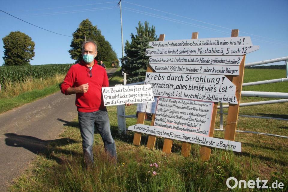 Bereits vor gut sechs Wochen machte der Vorsitzende der Bürgerbewegung "Gesundes Fuchsmühl", Alfons Höcht, mit einer Straßenblockade auf die - nach seiner Ansicht - Gesundheitsgefahren, hervorgerufen durch die Strahlung am Funkmast, aufmerksam. Nun legte er nach.