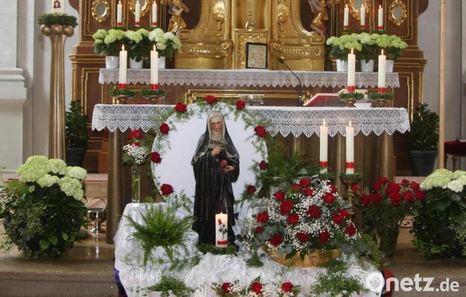 Eine Novene, die mit roten Rosen geschmückte Wallfahrtskirche und die festlich beleuchtete Rita-Statue in der Seitenkapelle: Die Pfarrei "Maria Hilf" Fuchsmühl erinnerte an den Sterbetag der heiligen Rita am 22. Mai 1447. Die Augustinerin gilt als Helferin in aussichtslosen Nöten.