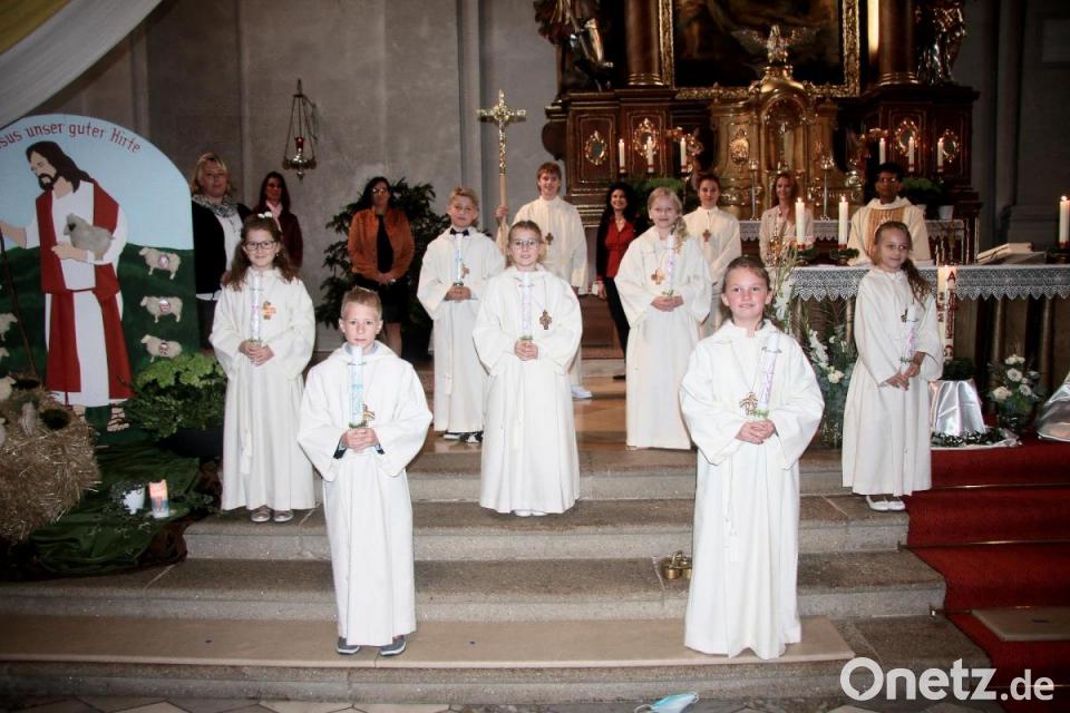 Gefeiert wurde in der Wallfahrtskirche „Maria Hilf“. Musikalisch umrahmt wurde der Erstkommunion-Gottesdienst von den Sopranistinnen Sigrun Hartung, Maria Beer und Anita Schnurrer. Am Dirigentenpult stand Werner Fritsch, die Orgel spielte Hubert Köhler. Im Anschluss an den Gottesdienst bedankte sich Pfarrer Joseph bei allen, die zum Gelingen des Festes beigetragen hatten. Sein besonderer Dank galt Mesner Siegfried Stock und der Tischmutter Andrea Bauer, die von Jasmin Heimerl und Melanie Greger unterstützt wurde. Verantwortlich für den Kirchenschmuck waren Franziska Heindl und Christa Hilgarth. Für die Sauberkeit in der Kirche sorgte ein Team des Frauen- und Müttervereins aus Fuchsmühl. Schön geschmückt war auch der Weg zum Altar und zu den Kirchenbänken. „Ich wünsche euch allen einen schönen Tag“, verabschiedete Pfarrer Joseph die Kinder und Erwachsenen, um danach den Segen zu sprechen.