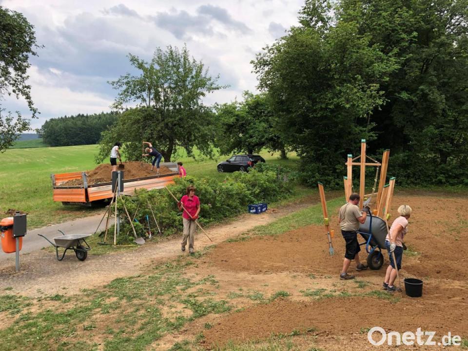 Dazu trafen sich ein Dutzend Freiwillige, um die Steine abzuklauben, damit diese nicht die Saat stören. Bauhofmitarbeiter hatten einen Kipper mit Erde bereitgestellt, die mit Schubkarren auf das Gelände gefahren wurde. So konnte das Erdreich aufgefüllt und eingeebnet werden. Den derart vorbereiteten Untergrund säten die Helfer dann an und wässerten ihn. Schon in kurzer Zeit wird der Spielplatz wieder ein Treffpunkt für Familien werden.