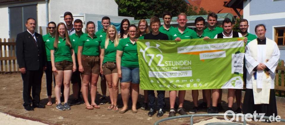 Die Landjugend hat sich an der bundesweiten Sozialaktion "Uns schickt der Himmel" des Bunds der Deutschen Katholischen Jugend (BDKJ) beteiligt, bei der es darum geht, 72 Stunden lang anderen Menschen etwas Gutes zu tun. Die Gebenbacher entschlossen sich, in 72 Stunden den arg ramponierten Spielplatz im Dorfkern auf Vordermann zu bringen - was gar nicht so einfach war. Von den 80 Mitgliedern waren rund 40 bis 50 drei Tage lang im (Dauer-)Einsatz. Die Gemeinde hat die Materialkosten übernommen (und die Getränke zur Einweihungsfeier gesponsert), Bürgermeister Peter Dotzler schätzte am Sonntag bei der Spielplatz-Einweihung, die Kommune hätte circa 10 000 Euro aufwenden müssen, um den Spielplatz in diesen Zustand zu versetzen. Wie Landjugend-Vorsitzender Julian Bauer ausführte, seien 60 Tonnen Sand größtenteils per Hand ausgetauscht worden, der komplette Zaun erneuert. Randleisten wurden gesetzt und betoniert, ein neuer Rasen angesät und eine komplette Holzsitzgruppe gezimmert. "Eine phänomenale Leistung", lobte der Bürgermeister das Engagement der Landjugend und das Aussehen des Platzes samt Spielgeräten. Der Spielplatz bekam auch den kirchlichen Segen.