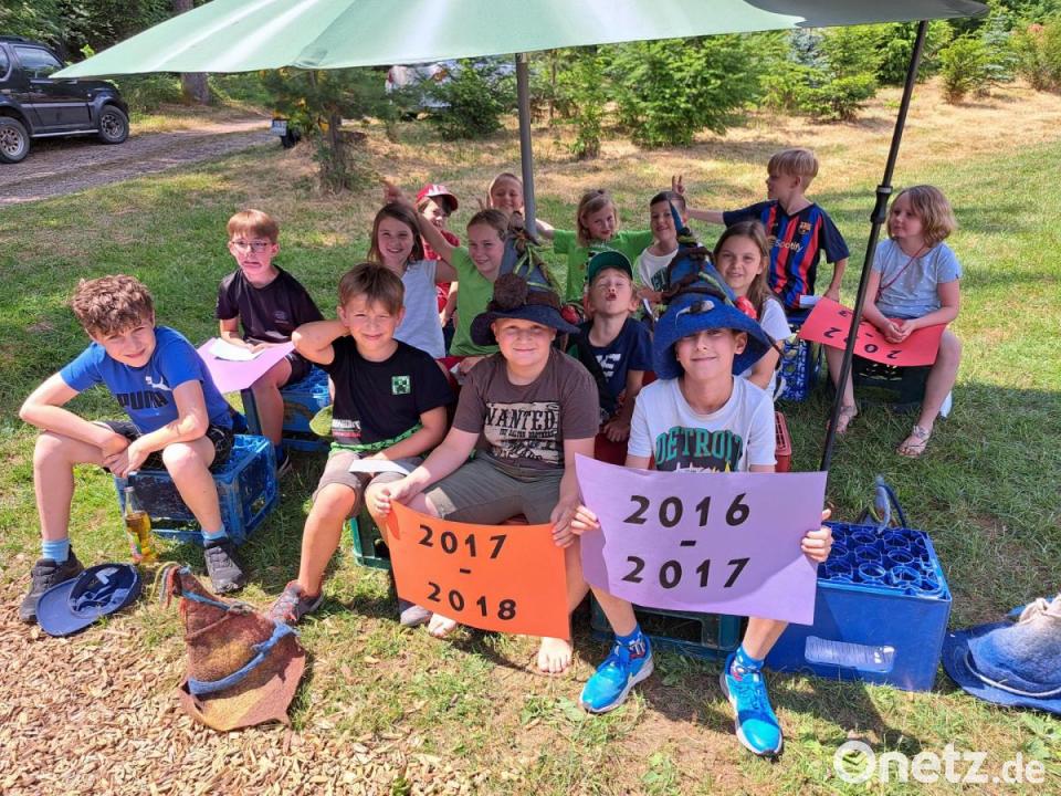 Die Kindergartenkinder mit ihren Familien sind zusammen den ehemaligen Kindergartenkindern (Jahrgänge 2016 - 2022) in den Räuberwald des BRK-Kindergartens zu einem Sommerfest gekommen. Die Kinder gaben einen Einblick in die vergangenen sieben Kindergartenjahre. Es ging um die Hochbeete, das Gewächshaus, den Kartoffelacker im Kindergartengelände und um die Bienen und Hühner.