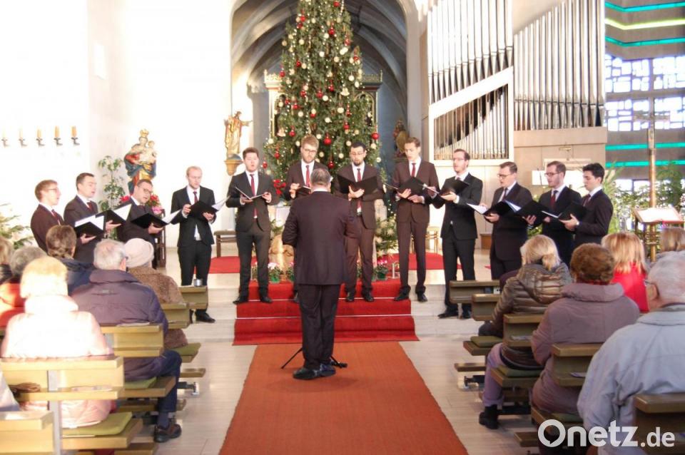 Zum zweiten Mal bereits kamen der Männerchor, der aus ehemaligen Domspatzen besteht, nach Gebenbach. Hatten die 13 Herren und ihr Leiter, Pfarrer Holger Kruschina aus Roding, 2018 dem Advent Glanz verliehen, so strahlten heuer die Stimmen mit dem Weihnachtsbaum um die Wette. Und auch die Sonne erhellte die Westfront der Kirche und leuchtete in diese Stunde hinein.