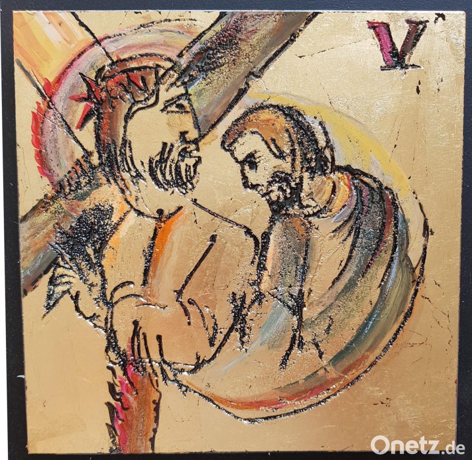 Die Muster der Kreuzwegstationen V und XII hatte er mitgebracht. Sie kamen bei den Betrachtern gut an. Fischer will in den Kreuzwegstationen die Liebe Gottes zu den Menschen zum Ausdruck bringen. Bewusst habe er die Motive in Metallplatten eingeätzt und nicht aufgesetzt. Die Darstellungen sind damit nicht oberflächlich sondern vertieft, als bewusste Spur des menschgewordenen Antlitzes Gottes. Das aufgelegte Blattgold unterstreicht diese Botschaft. Pfarrer Most gab bekannt, dass Anneliese Hierold aus Regensburg bereit sei, die Kosten des Kreuzwegs an den Förderverein zu spenden. Einstimmig beschloss daraufhin die Versammlung den Fischer-Kreuzweg für die neue Kapelle Gebhardsreuth zu erwerben. Allerdings muss noch geklärt werden, wie die 14 Stationen in der Kapelle angebracht werden. Entweder alle verteilt über die Kapellenwände oder mit je sieben Stationen links und rechts vom Altar.