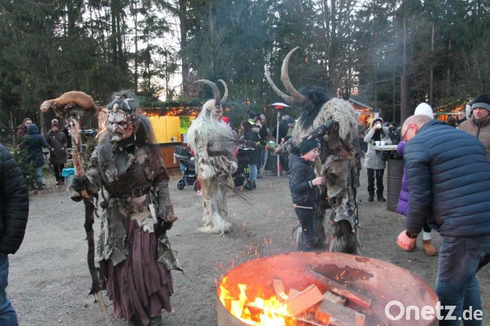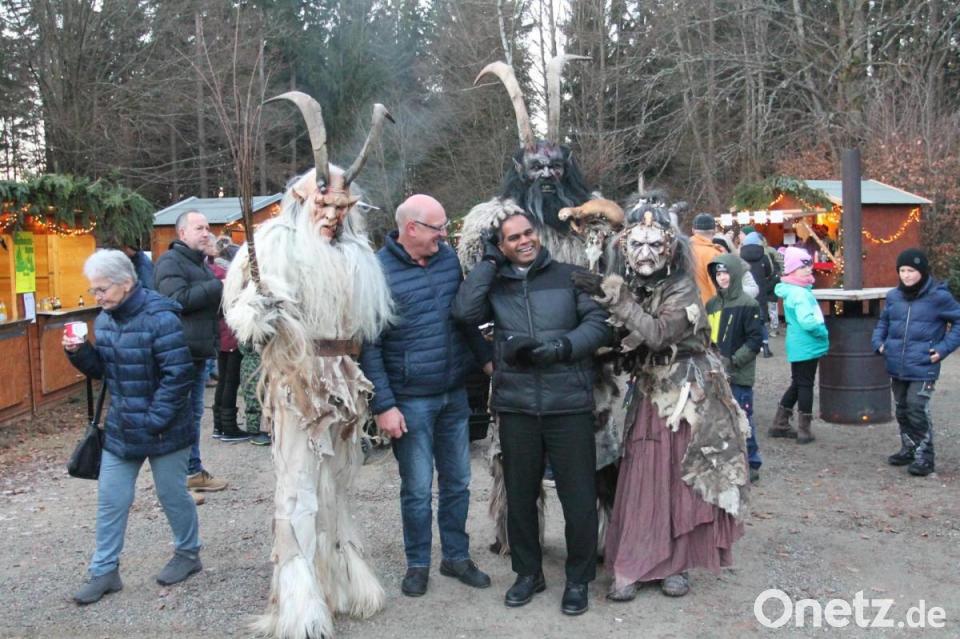 Als „Special Guests“ hatte der zweite Bürgermeister die „Stoapfalz-Deifl’n“ angekündigt. Und so mischten sich Punkt 16 Uhr drei dunkle Gestalten in ihren handgeschnitzten, gruseligen Masken unters Volk und trieben ihr Unwesen. So teuflisch sie auch aussahen, den Besuchern, darunter viele Kinder, gefiel’s. Das galt auch für die Jagdhornbläser, die mit adventlichen Klängen auf die „Staade Zeit“ einstimmten. Ein weiterer Höhepunkt sollte aber noch kommen. „Der Nikolaus ist da“, freuten sich vor allem die Mädchen und Jungen. In Begleitung von Knecht Ruprecht verteilte er an die Jüngsten kleine Geschenke.
