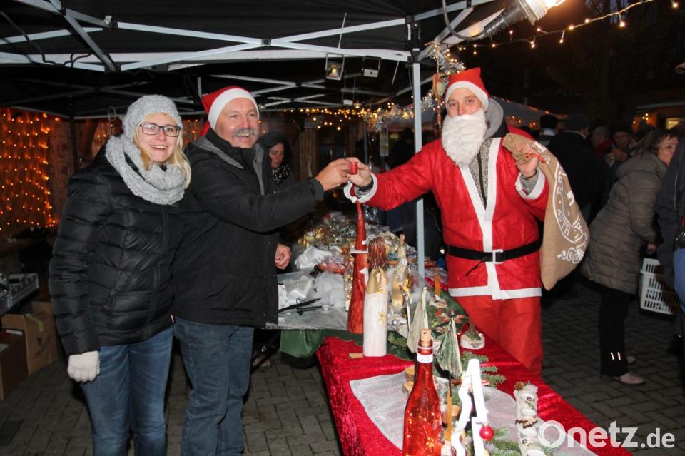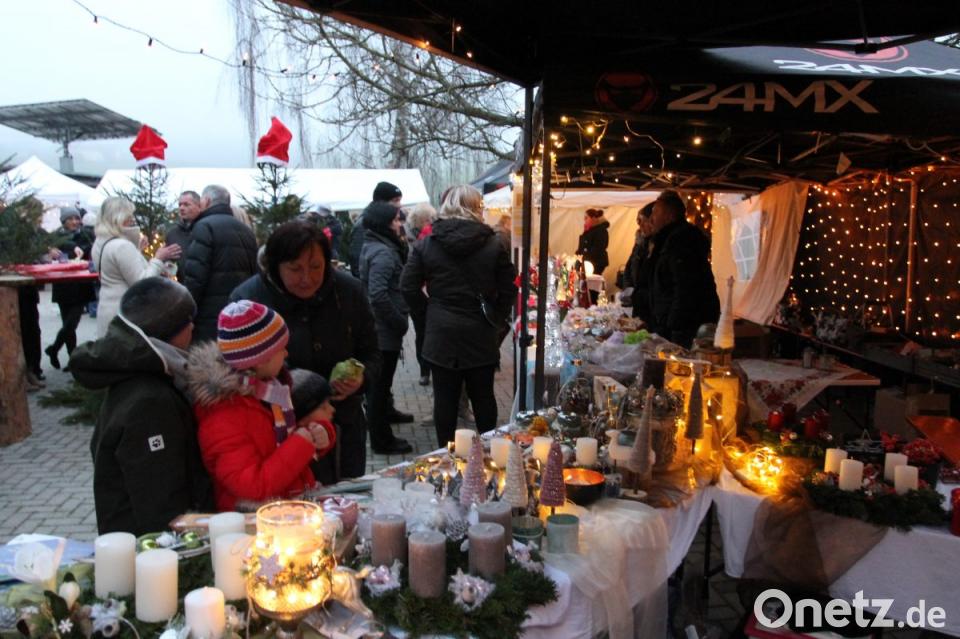 Und gleich nebenan war der der Chef des Gasthofs, Peter Hartwig, in seinem Element und schob einen Flammkuchen nach dem anderen in den Steinbackofen. Die Delikatesse kam bei den Gästen ebenso an wie das vielseitige Angebot an und in den Ständen. Im bunten Lichtermeer gab es unter anderem neben Advents- und Weihnachtsschmuck oder Weihnachtsgebäck und Schokolade unter anderem Strickwaren, Seifen, Dekorationsartikel und Spielsachen für die Kinder.