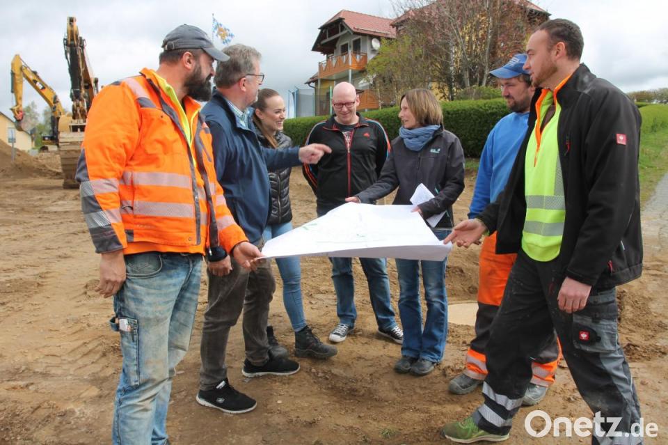Abgefräst ist inzwischen die Asphaltdecke im Straßenzug Schweizerhof bis zur zweiten Einfahrt ins Baugebiet. „Es läuft gut“, freut sich Bürgermeister Johann Maurer, der täglich auf der Baustelle anzutreffen ist und nach dem Rechten sieht. Gemeinsam mit Alexandra Völkl und Anna-Lena Grötsch von der Bamler Bauingenieur GmbH in Vohenstrauß – das Planungsbüro begleitet die Erschließung des Baugebiets –, Bauleiter Martin Pongratz vom Unternehmen Dankerl sowie Thomas Schaller und Tobias Dunkl vom gemeindlichen Bauhof ging es bei der Besprechung am Donnerstag vor allem um Kanal- und Wasserleitungsarbeiten. Im Übrigen bittet Maurer um Verständnis, wenn es während der Bauarbeiten zu kurzzeitigen Behinderungen oder Einschränkungen kommt.