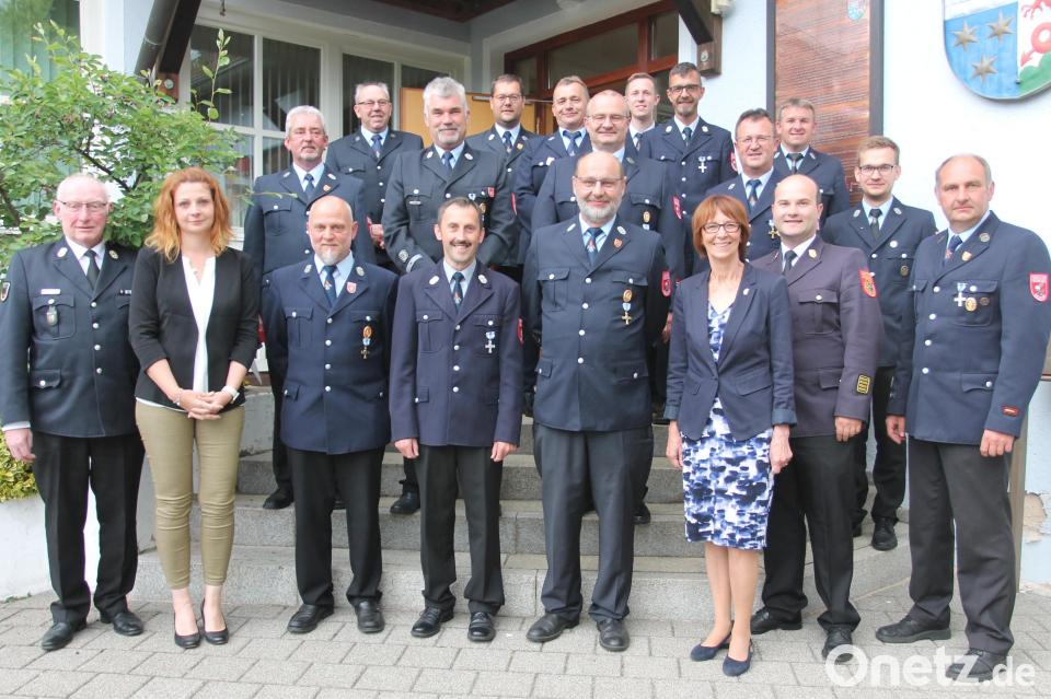 Dazu kamen die „Silberjubilare“ Helmut Piehler (Brünst), Günther Kraus junior, Petra Winklmann (Neudorf), Ringo Haase und Tobias Schönberger (Neuenhammer). Sie stehen seit 25 Jahren sozusagen „im Brennpunkt“.