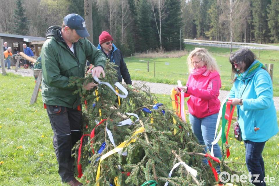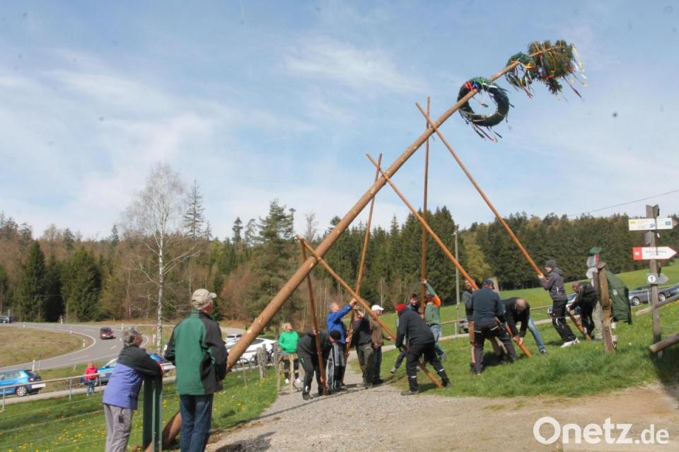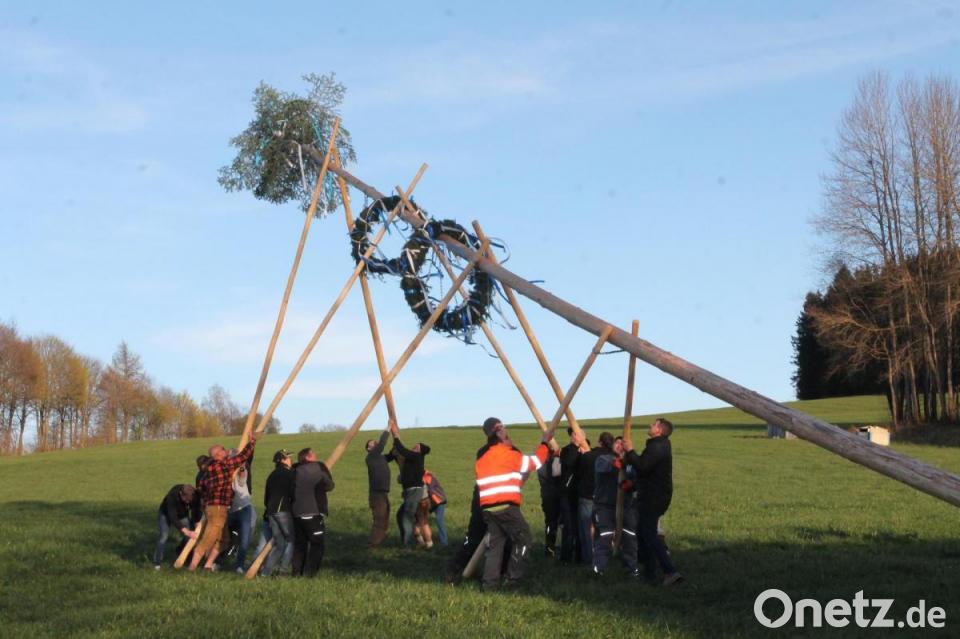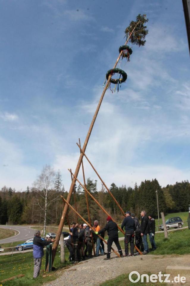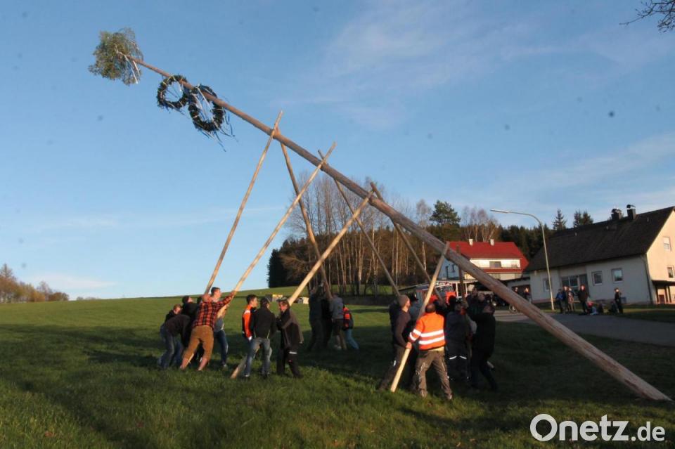 Nichts zu holen gab es bei der Feuerwehr und Soldaten- und Kriegerkameradschaft Brünst, die ihren Baum traditionell in Handarbeit mit Schwalben in die Höhe hievten. Perfekt vorbereitet hatten sich auch die Feuerwehren Georgenberg und Neudorf sowie die Dorfgemeinschaft Waldkirch mit Feuerwehr und Siedlergemeinschaft. Auch dort gingen die Aktionen problemlos über die Bühne. Bei der Mühle in Gehenhammer war nach altem Brauch Muskelkraft angesagt.