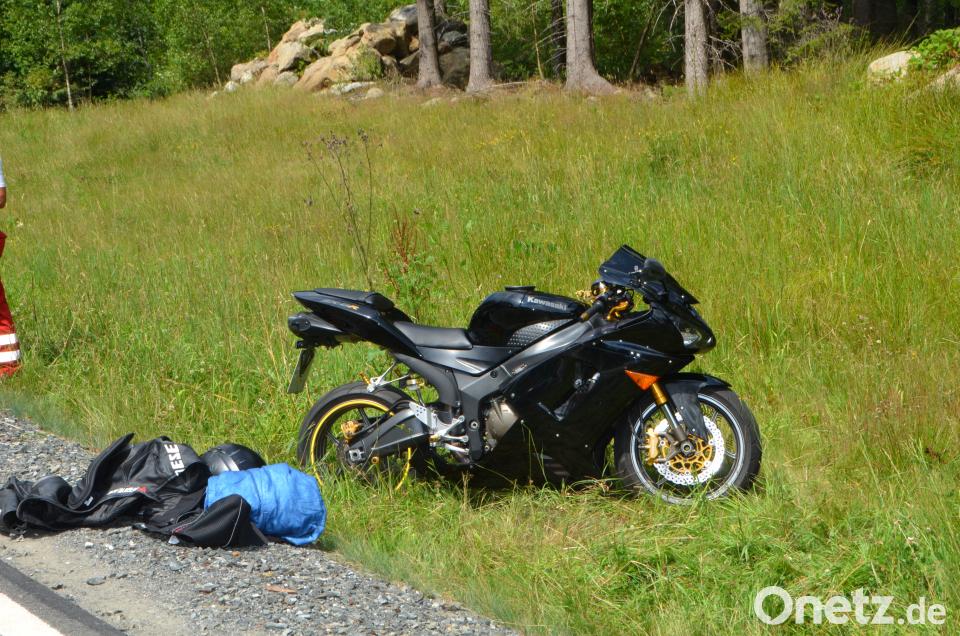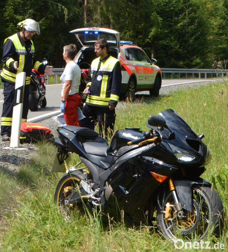 Eine Motorrad-Tour einer motorisierten dreiköpfigen Gruppe aus Fürth endete am Sonntag jäh gegen 14 Uhr, als einer der Biker schwer stürzte und sich mittelschwere Verletzungen zuzog. Das Trio war auf der kurvenreichen und bei Motorradfahrern beliebten Staatsstraße 2396 von Georgenberg in Richtung Flossenbürg unterwegs, als ein 24-jähriger Kawasaki-Fahrer in einer langgezogenen Linkskurve, kurz nach dem Weiler „Krautwinkel“, auf das rechte Bankett geriet und stürzte. Seine Kameraden alarmierten die Integrierte Leitstelle (ILS) in Weiden, die umgehend die Rettungskette in Gang setzten. Edeltraud Pilfusek als „Helfer vor Ort“ kümmerte sich als Erste um den verletzten Motorradfahrer, bevor das BRK-Rettungsteam am Unfallort eintraf. Die 10 Einsatzkräfte der Freiwilligen Feuerwehr aus Neudorf mit Kommandant Andreas Götz und 9 Kameraden aus Georgenberg mit ihrem Chef Matthias Scheinkönig sperrten die Strecke komplett für den Verkehr, sicherten die Unfallstelle ab und halfen bei der Bergung des erheblich beschädigten Bikes. Laut Angaben der Beamten der Polizeiinspektion Vohenstrauß dürfte der Gesamtschaden bei mindestens 3000 Euro liegen. An der Unfallstelle lief auch eine geringe Menge an Betriebsstoffen aus. Der verletzte Motorradfahrer wurde ins Klinikum Weiden eingeliefert.