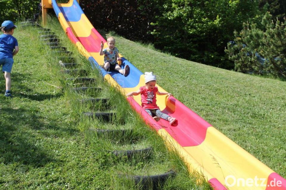 Nach und nach strömten ab 14 Uhr Mädchen und Jungen mit ihren Eltern, Geschwistern oder auch Oma und Opa auf das Gelände. „Auf die Plätze, fertig, los“, das hieß es unter anderem bei lustigen Spielen, als die jungen Gäste etwa zwei Masskrüge per Schwamm mit Wasser füllen mussten. Stark frequentiert waren auch Rutschbahn, Klettergerüst oder Netzschaukel. Und wer von der Schminkecke zurückkam, strahlte eventuell über ein neues Tattoo.