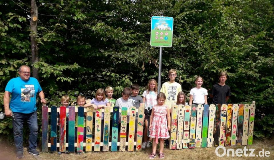 Kinder bemalen Gartenzaun am Spielplatz in Glaubendorf