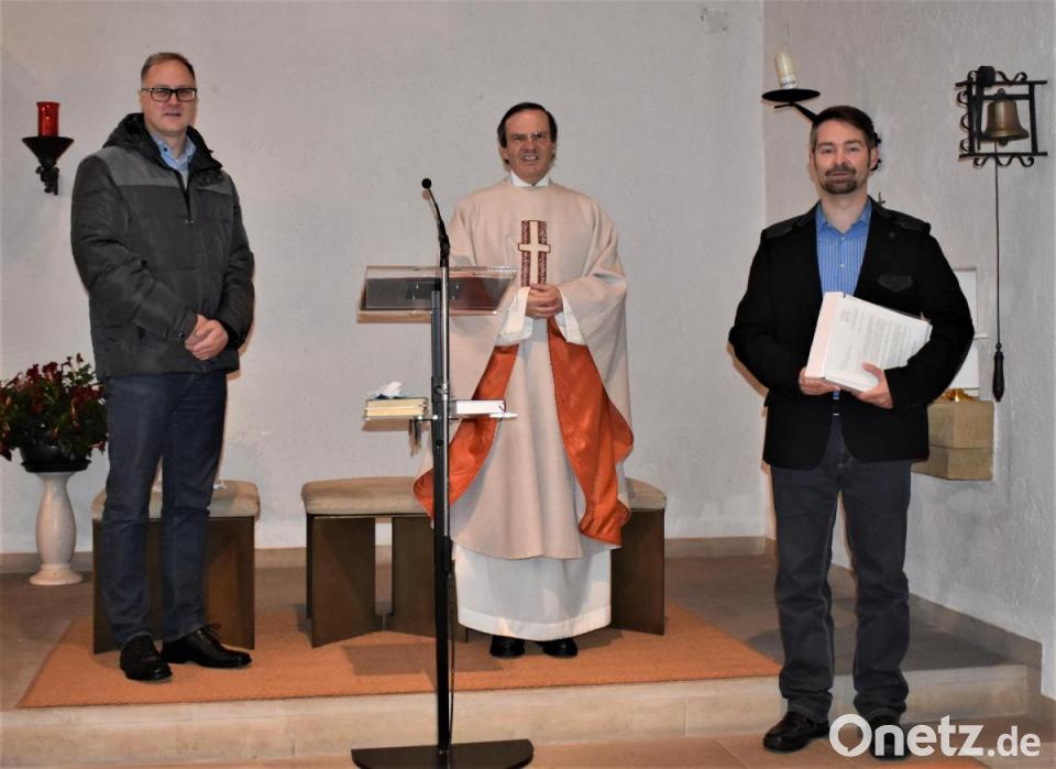 Im Gottesdienst in der Filialkirche "Herz Mariä" mit Pfarrer Bernhard Müller ging es am Sonntag um das Kirchweihfest. Am Schluss bat der Geistliche jedoch Martin Schmid nach vorne. Müller zeichnete Schmid für seine 25-jährige Ministrantenzeit aus.