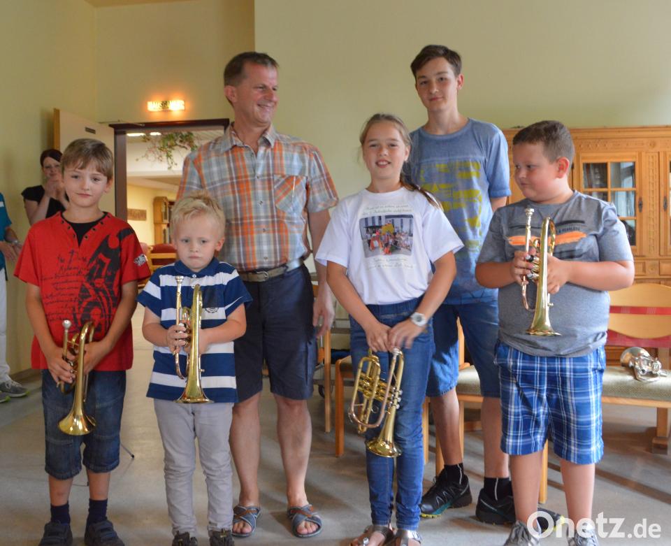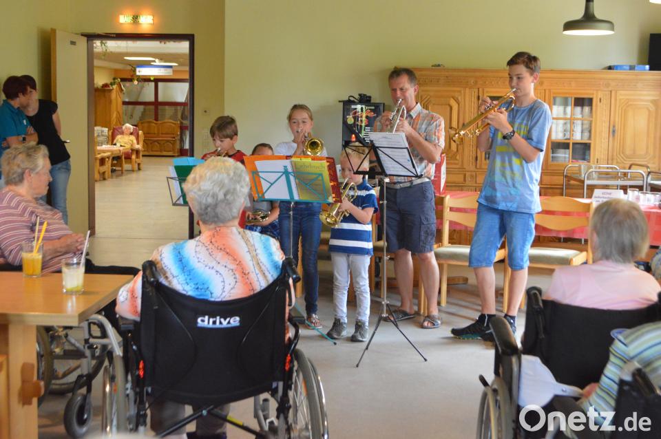 (myd) Bei einer Serenade kamen Kinder und jugendliche Schüler von Musiklehrer Benno Englhart ins Haus und beeindruckten ihre aufmerksamen Zuhörer mit einem breiten Repertoire an bekannten Melodien. Für Erfrischung an dem heißen Sommertag hatte Pflegedienstleitung Melanie Gundel vorgesorgt und servierte mit ihrem Team Orangensaft mit Vanilleeis. Mit der Turmfanfare eröffnete Stefan Kirschner das Konzert. Später folgten unter anderem "Kommt ein Vogel" oder "Bella Bimba" Paul Schnabel ließ unter anderem "Im Märzen der Bauer", "Hänschen klein", "Wenn ich ein Vöglein wär", oder im Duett mit Stefan Kirschner "Drei Chinesen mit nem Kontrabass" erklingen. Mit der Liedauswahl trafen die Musiker voll den Geschmack des Publikums, bereits nach wenigen Tönen eines jeden Lieds stimmten die Zuhörer mit ein.