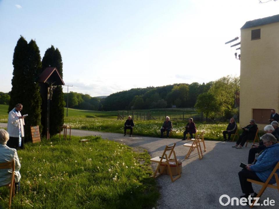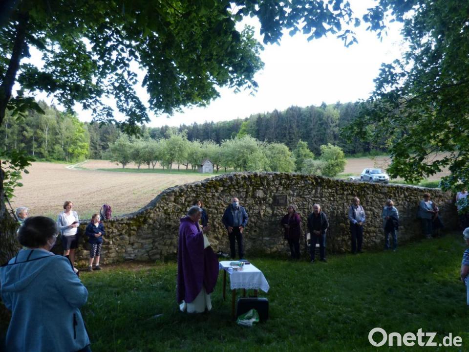 Ein ebenfalls alter Brauch auf dem Land sind die Bittgänge in den Tagen vor Christi Himmelfahrt. Die Aufforderung zum Mitmachen ergänzte der Pfarrer mit dem Hinweis, die Abstände einzuhalten, was auch beachtet wurde. Der religiöse Spaziergang zur Kapellenruine bei Arzlohe wurde mit Glockenklang begrüßt. Im alten Gemäuer unter den mächtigen Linden nahmen die Gläubigen an der Messfeier mit provisorischen Altartisch teil. Ebenso fanden sich Gläubige in Ermhof auf der Gedenkstätte einer der ältesten Kirchen unserer Region zum Gottesdienst im Freien ein.
