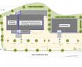 Der Hauptzugang erfolgt über die Kreuzung von Eichendorff- und Friedrich-Ludwig-Jahn-Straße. Die Wohnungen werden über Laubengänge zugänglich sein. Die Bauten werden nur im südlichen Teil unterkellert. Im Keller aus Stahlbeton werden Abstell- und Technikräume sein. Im eingefassten Innenhof sollen den Bewohnern zudem Sitzelemente, Hochbeete und Spieleflächen zur Verfügung stehen. Eine Solitärbaumbepflanzung wird für Schatten sorgen. Auf den dazugehörigen Stellplätzen kommen Rasengitterpflaster zum Einsatz. Zwei kleinere Gebäude sollen als Stellplatz für Fahrräder mit einer Ladestation und für Mülltonnen dienen.