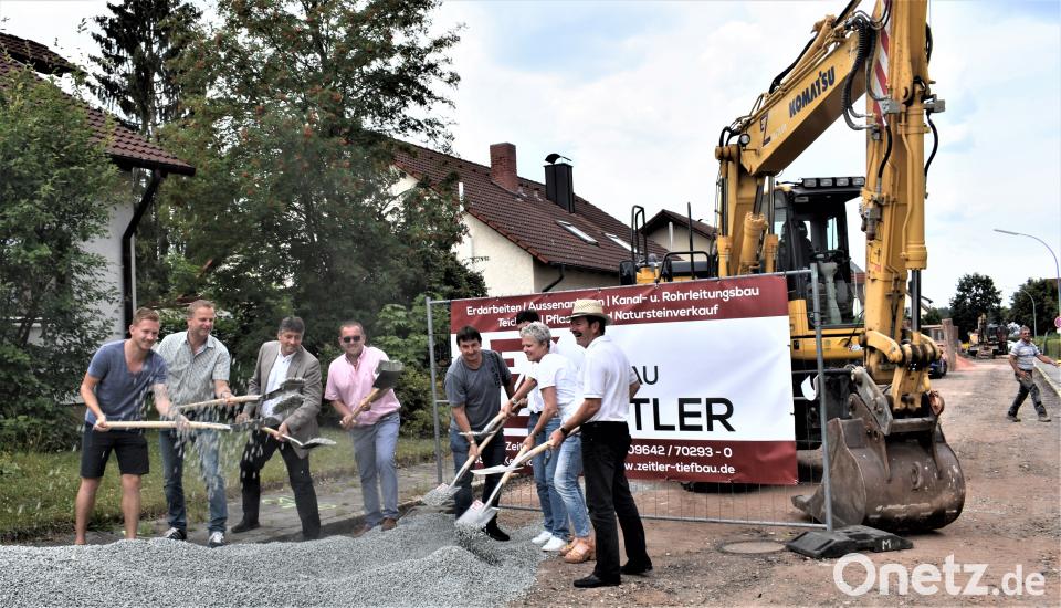 Zum Spatenstich begrüßte Bürgermeister Edgar Knobloch Christine Meyer von der Arbeitsgemeinschaft Fetsch/W.Röth GmbH aus Amberg, die mit der Planung betraut ist sowie Michael Wagner und Joachim Seitz vom Architekturbüro Schultes. Diese führten die Bauausschreibung durch und sind für die Planung von Kanal und Wasser verantwortlich. Zum Spaten griffen auch Thomas Zeitler von der ausführenden Baufirma, Stadtbaumeister Hans Rettinger, Bauamtsleiterin Kathrin Regler sowie der Vorstand der Stadtwerke Helmut Amschler.