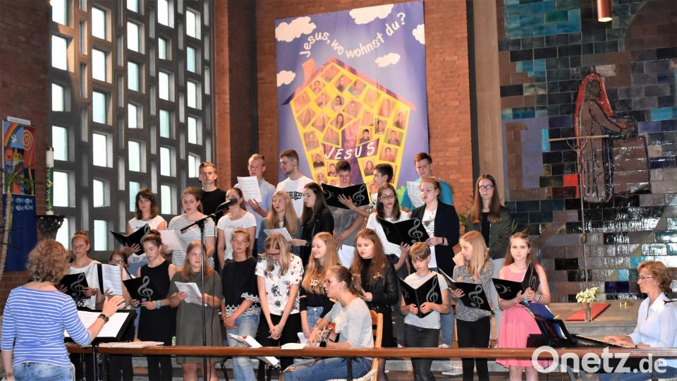 Der Jugendchor "Sin falta" begleitete mit passenden Liedern eindrucksvoll den Gottesdienst. Er sang beispielsweise "Alle meine Quellen entspringen in dir", "Du bist der einzig wahre Gott", oder "Du bist der Hirte, du willst mein Leben leiten...". Dann verabschiedete sich auch Pfarrer Müller bei Anna Hößl und Lukas Krauß für ihren langjähren Ministranten-Dienst.