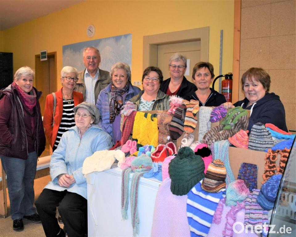 "Am ersten oder zweiten Mittwoch im Monat klappern und glühen die Nadeln unseres Strickkreises", erklärte Ingrid Meyer. Heuer kamen bereits zum achten Mal 175 Kunstwerke zusammen. Neben warmen Pullovern, Socken, Mützen und Schals waren auch Babyschuhe und Kuscheltiere mit dabei. Diese wurden freudestrahlend von Monika Sebald, Leiterin des Grafenwöhrer Bürgerladens, entgegengenommen. Sie bedankte sich im Namen "ihrer Kunden".