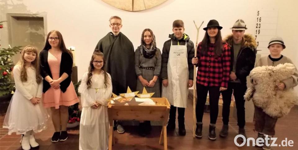 Den Gottesdienst leitete Lektorin Judith Rau, die die Familien auf das Weihnachtsfest einstimmte. Die Lesung übernahm Nele Hänisch, die Fürbitten, die als gebastelte Sterne in die Krippe gelegt wurden, trugen die Krippenspieler vor.