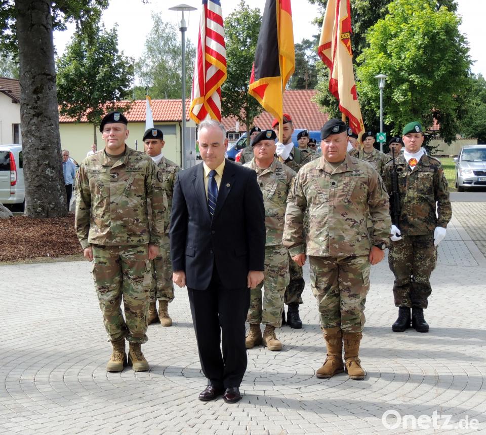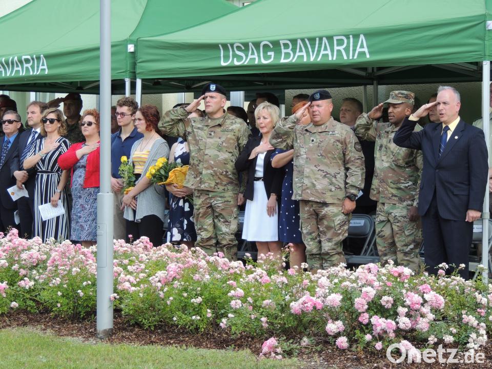 Vor der Formation mit Command Sergeant Major Michael Sutterfield an der Spitze wurde die Garnisonsfahne von Interimskommandeur, Oberstleutnant Gregory C. Scrivens, an den neuen Kommandeur übergeben. Stabschef Scrivens diente als Garnisonskommandant seit Colonel Lance Varney im vergangenen Monat das Kommando übergab. Der Direktor der Installation Management Command-Europe Michael D. Formica begrüßte Ehrengäste aus Politik, Militär, Polizei, Forst und dem öffentlichen Leben. Namenlich begrüßte er den stellvertretenden Landrat Albert Nickl und die Bürgermeister Edgar Knobloch und Hans Martin Schertl. Einen Dank richtete Formica an Oberstleutnant Scrivens für die Leitung in der Übergangszeit.