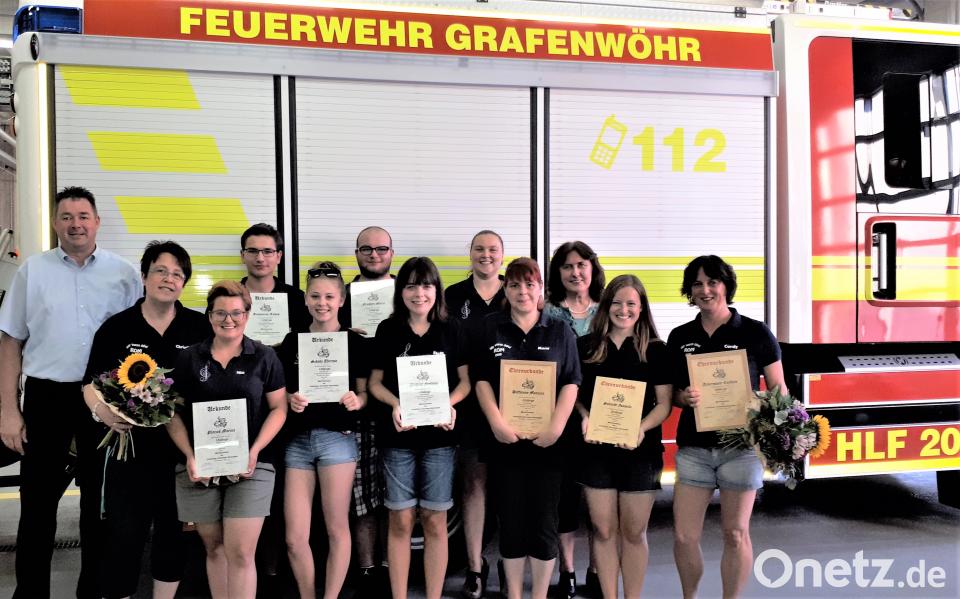 Tambourmajorin Melanie Kappl und die organisatorische Leiterin des Spielmannszuges Isabelle Schmidt bedankten sich bei folgenden Mitgliedern für ihre Treue und überreichten Urkunden, Blumen, Obstkörbe und Tassen an: Dr. Christina Eibel für 45 Jahre, Cordula Ackermann für 40 Jahre, Manuela Hoffmann für 25 Jahre, Isabelle Schmidt für 20 Jahre, Marina Placzek und Stefanie Plößner für jeweils 15 Jahre sowie Lukas Kammerer, Mario Frusteri und Theresa Schoba für jeweils zehn Jahre. Der zweite Vorsitzende der Feuerwehr Markus Englhardt und die "Spielmannszug-Mama" Petra Melchner gratulierten den Geehrten.