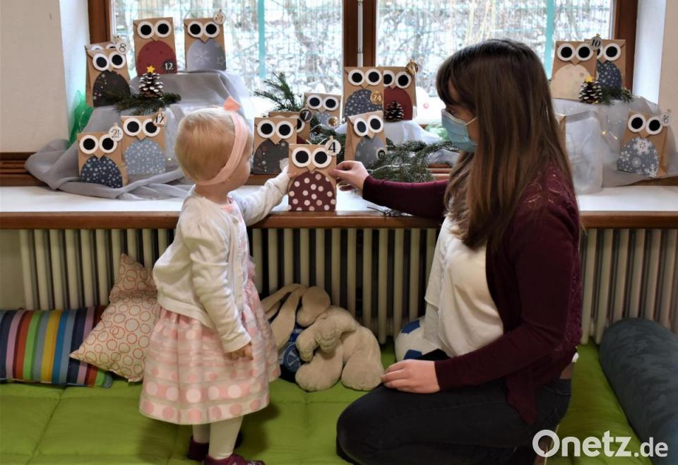 Eulen begleiten Krippenkinder der evangelischen Kindertagesstätte "Kinderhaus Kunterbunt" im Advent