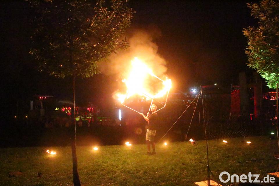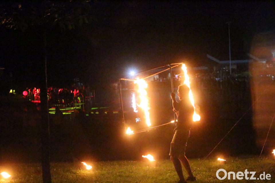 Feuertanz im Regen beim Waldbadfestival