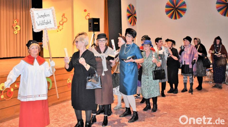 Die Gäste hatten auch Gelegenheit, bei flotter Musik zu tanzen. In den Tanzpausen war Lachen angesagt bei einigen Sketchen. Das Highlight war die Jungfrauen-Wallfahrt. Die 15 Teilnehmerinnen flehten inständig: "O heiliger Sankt Schickanuns, geh hör uns doch a, geh schick uns, geh schick uns doch endlich an Ma! Übers Internet oan suchn kinna ma net; also müssn ma gehn zu Fuß."