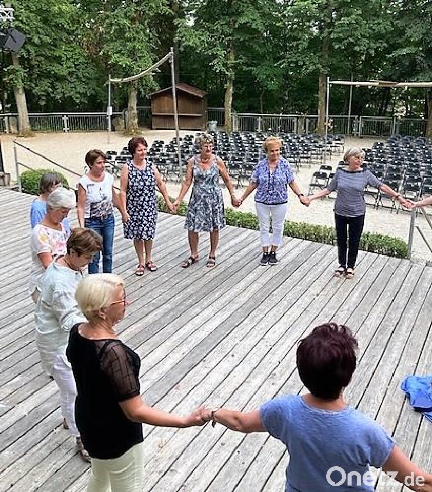 Für Schauspieler oder Musikakteure ist ein Auftritt auf der Naturbühne am Schönberg nichts Neues. Aber für die Mitglieder des Katholischen Frauenbundes, die dort zum ersten Mal das meditative Tanzen praktizierten. Unter Leitung von Margarete Hirsch tanzten die Frauen unter freiem Himmel, was allen Mitwirkenden großen Spaß bereitete. Es war eine Premiere, denn getanzt wurde schon öfter, aber in der Vergangenheit war der Tanzboden stets im Jugendheim. Man war sich einig: "In freier Natur ist es noch viel schöner, um in Gleichgewicht, Ruhe und Harmonie zu kommen."