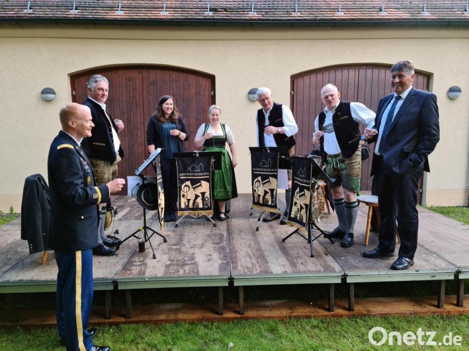 Als kleinen Ausblick auf die Oberpfälzer Festlichkeiten spielte außerdem die "Hammerschloss-Musi" – inklusive "Schnapserln" für die Ehrengäste – und die Schwarzenbacher Schenkelzinterer gaben eine Kostprobe ihrer Tanzkunst ab. Ganz ohne Geschenk war auch Danbeck nicht gekommen: Die Amerikaner hatten ein Video der vergangenen zehn Jahre zusammengestellt, das sie den Vertretern der Stadt überreichten.