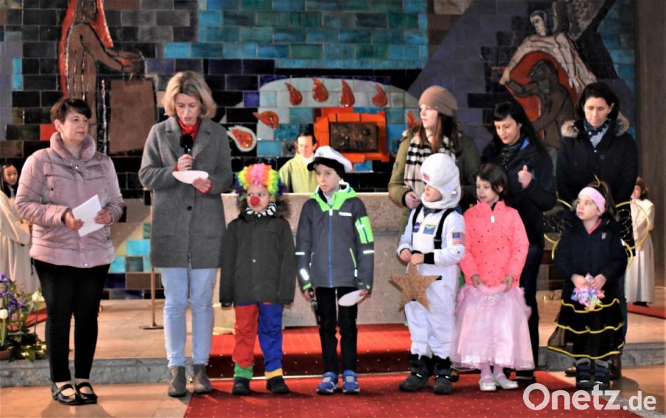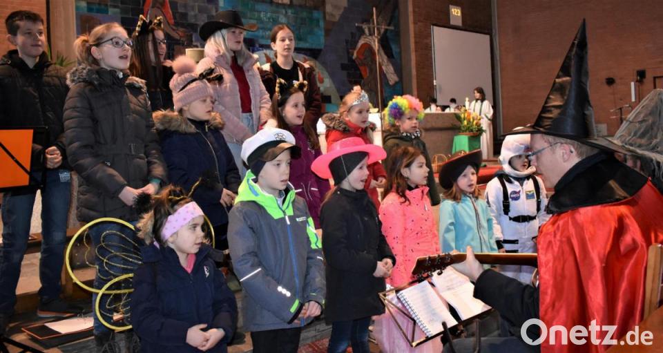 "Ich freue mich, dass ihr Kinder gekommen seid – und mit was für tollen Verkleidungen", lobte Pfarrer Bernhard Müller, der alle Gottesdienstbesucher begrüßte. Jetzt im Winter, wo alles so trist und kalt ist, ist der Fasching mit seiner Fröhlichkeit und den Farben eine willkommene Abwechslung. Im Gabenzug kamen Kinder als Clown, Polizist, Astronaut, Prinzessin und Biene zum Altar. Der Clown möchte allen Menschen Freude bereiten. Der Polizist legte seine Pistole nieder, weil er bei seinem Kampf um Gerechtigkeit niemanden verletzten will. Der Stern des Astronauten sollte den Schutz der Erde symbolisieren. Gott hat alle Menschen gleich lieb. Deshalb wurde die Prinzessinnenkrone abgenommen. Die Blumenkette galt als Zeichen zum Schutz von Blumen, Luft, Wasser und der Mutter Erde. Bei den Fürbitten wurde darum gebetet, auch nach der Faschingszeit Freude zu bereiten, besonders den kranken und traurigen Menschen. Pfarrer Müller erklärte in der Predigt, dass "selig" das gleiche bedeutet, wie "fröhlich". Beim Friedensgruß forderte er auf, sich gegenseitig das schönste Lächeln zu schenken. Der Kolping-Kinderchor unter Leitung von Andreas Greiner begleitete den Gottesdienst musikalisch, wo es abschließend hieß: "Dieser Tag soll fröhlich sein." Ingrid Hiller, die den Gottesdienst mit den Mädchen und Buben vorbereitet hatte, teilte an die Kinder Luftschlangen für daheim aus.